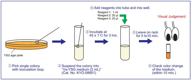 A. YSG agar should be OK for this kit. And we recommend to use Va-YSG (KYO-08901) for the next step (after incubation on YSG agar). Our kit is based on the protocol of Japan Fruit Juice Association, and BAT medium is not recommended. Results using BAT medium can not be guaranteed.