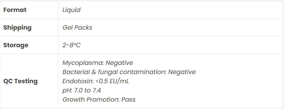OptiElite MSC Growth Media is a high-performance media formulation engineered to support the vigorous, reliable expansion of mesenchymal stem cells including Human Bone Marrow–Derived and Human Adipose-Derived Mesenchymal Stem Cells. Designed for high-density culture, OptiElite MSC Growth Media promotes strong proliferation while preserving MSC morphology, viability, and multipotent potential across multiple passages. Its optimized composition maintains cell health under demanding growth conditions and delivers consistent performance from thaw to expansion. The media is fully compatible with widely used transfection reagents, enabling efficient gene delivery and downstream functional studies without compromising growth characteristics. With a formulation built for stability, reproducibility, and ease of use, OptiElite MSC Growth Media provides a dependable platform for MSC culture while maintaining optimal stem cell quality and biological integrity.