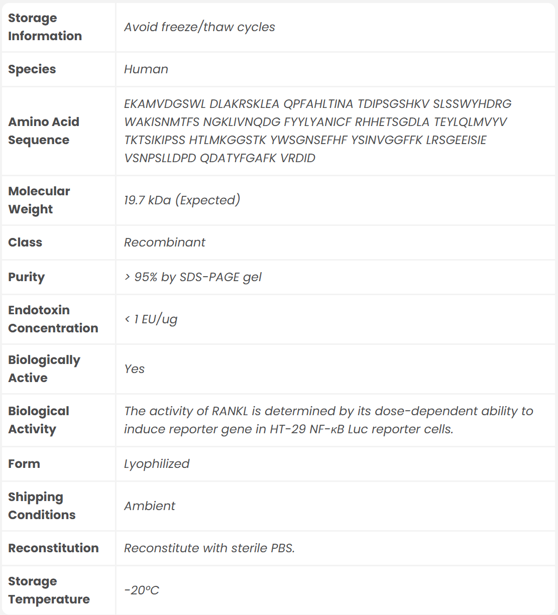 Recombinant Human Receptor Activator of Nuclear Factor-kB Ligand (RANKL)