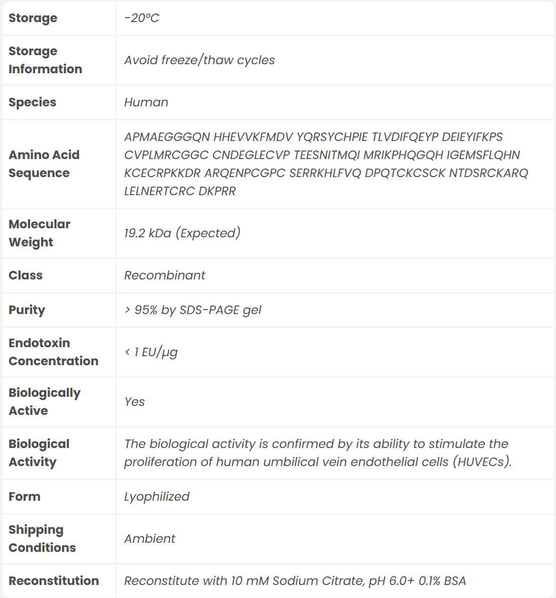 | Datasheet | Recombinant Human Vascular Endothelial Growth Factor 165 (VEGF-165) Datasheet |